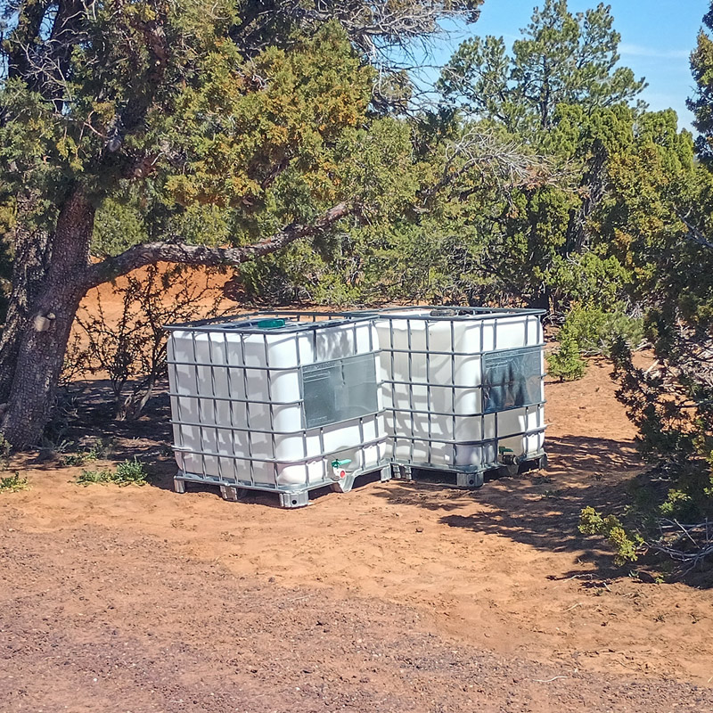Well... he didn't show up at 10am as we discussed, but he did show (at 11am). Whoo Hoo!!! He delivered two 300 gallon water cisterns. He also delivered 500 feet of 1/2" ID poly tubing and some fittings. That should be more than enough to go from the cisterns to the outhouse/shed (and back again to ensure there will be no freezing during the Winter) with enough to run to the greenhouse I plan to build. We'll install a small 12V water pump (similar to what's used in RVs), a solar panel and a battery (for 24 hour operation) to circulate the water in Winter. There should be enough pressure due to gravity to get it from the cisterns to the outhouse/shed. If not, I'll get a more "capable" pump and a pressure accumulator to pressurize the system. Time (and experience) will tell.